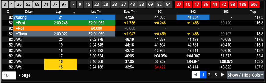 - See how many laps they have driven in their current stints (L Stnt).