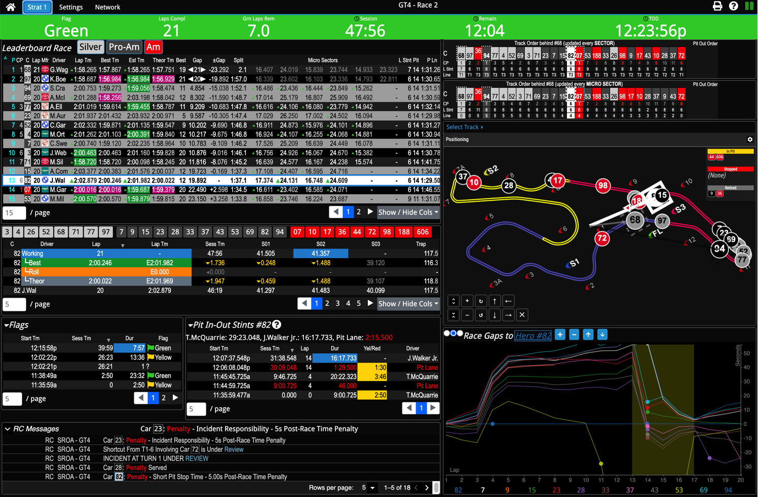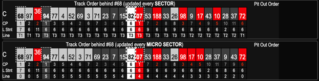 overtake ETAs, and sector time comparisons.